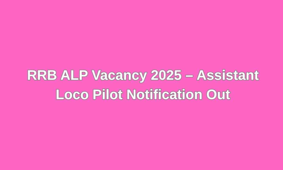 RRB ALP Vacancy 2025 – Assistant Loco Pilot Notification Out